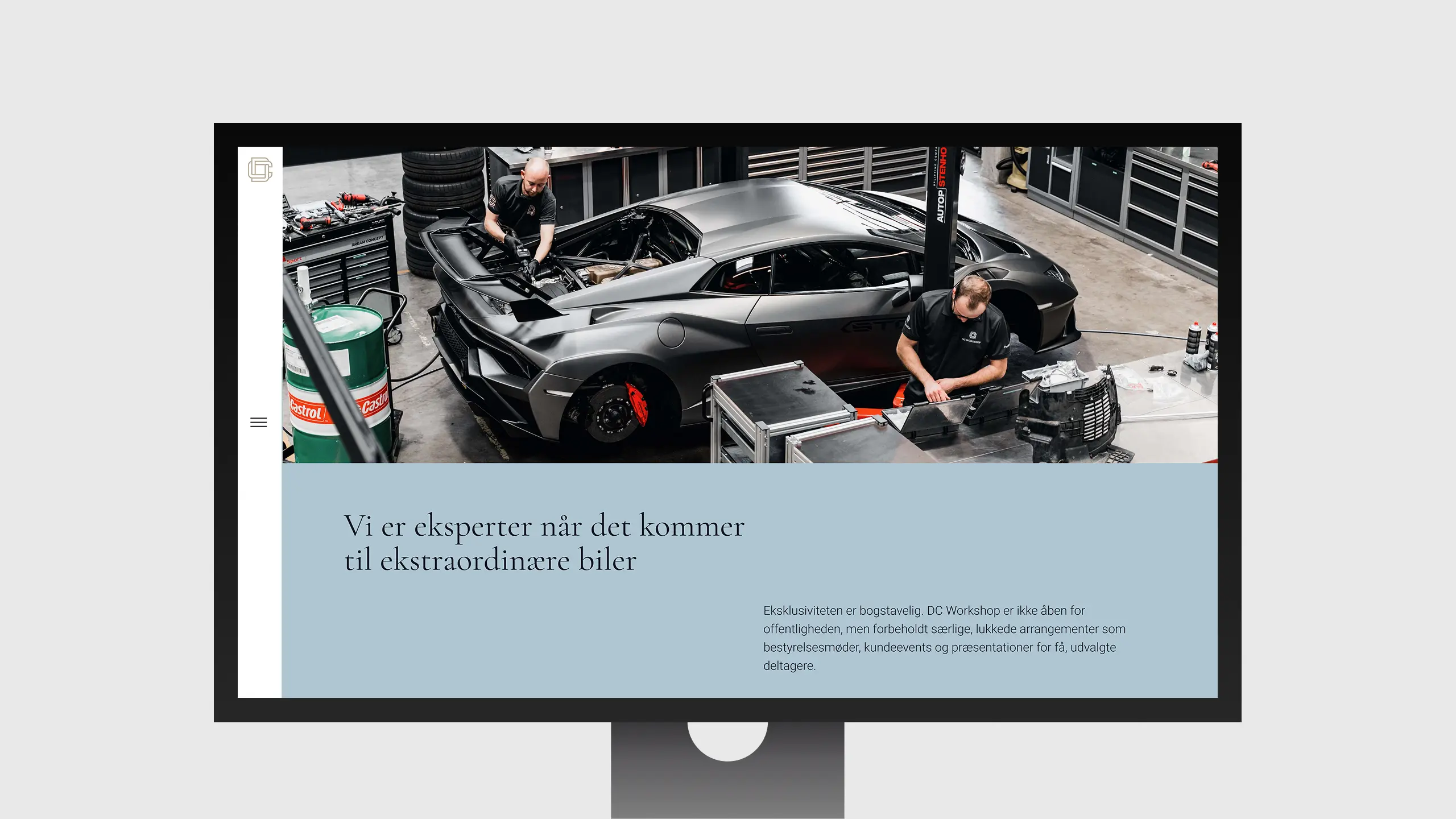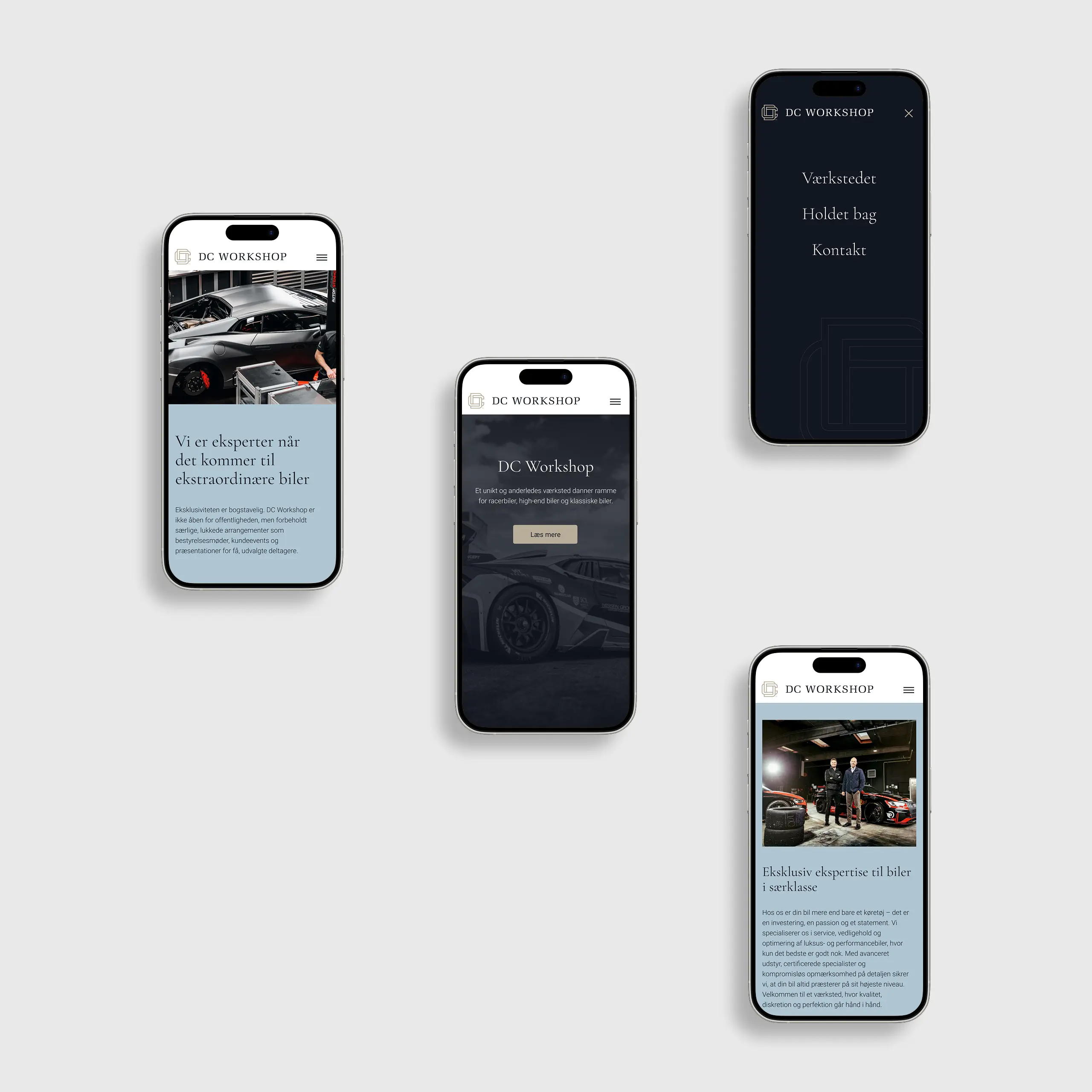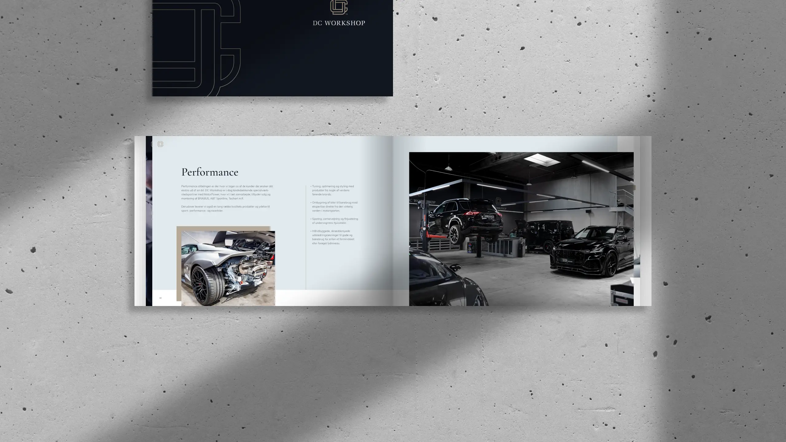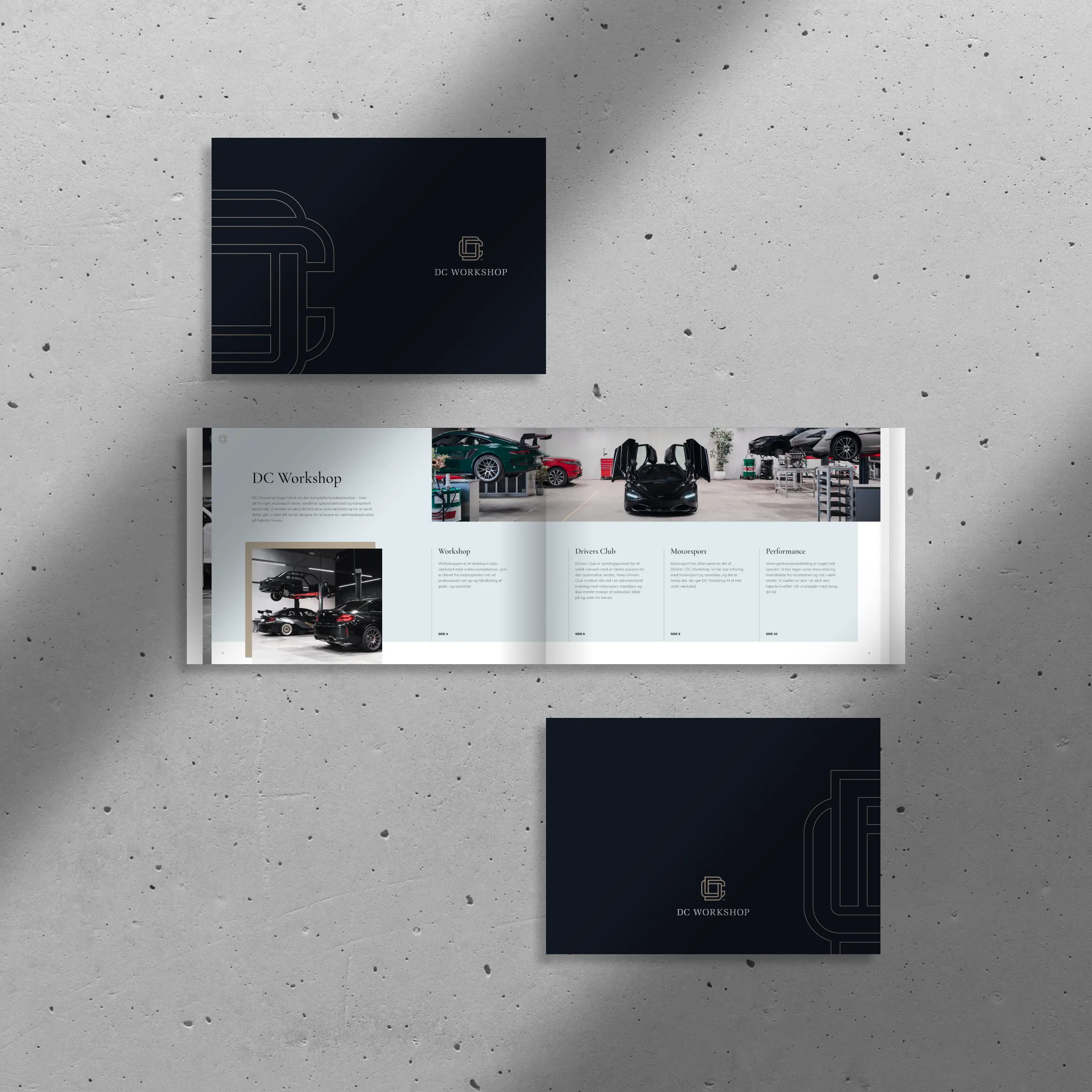 DC Workshop er et high-end værksted med speciale i performance biler. I forbindelse med opstarten havde de brug for en gennemført visuel identitet, der kunne matche både bilerne og det eksklusive kundesegment.