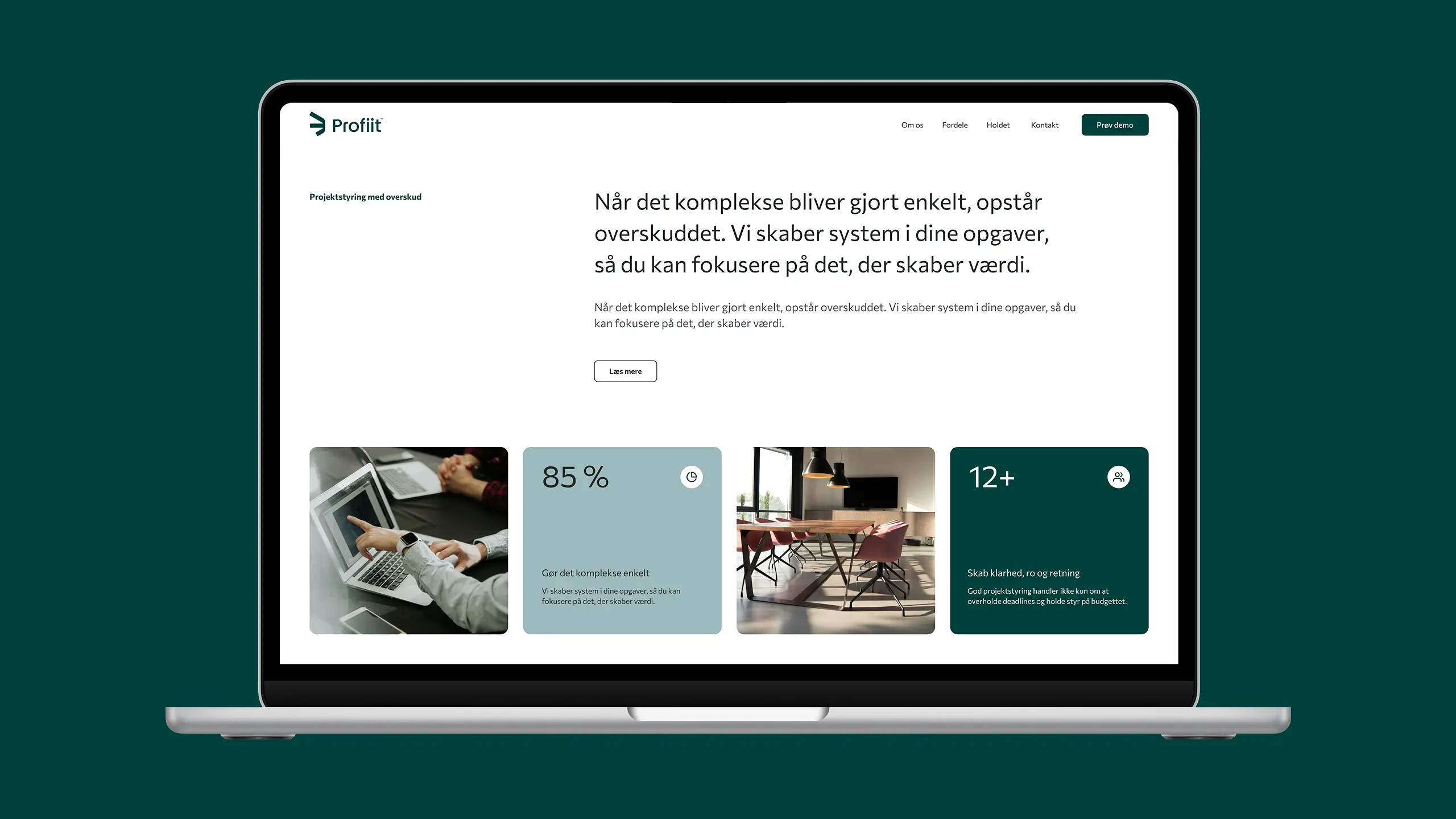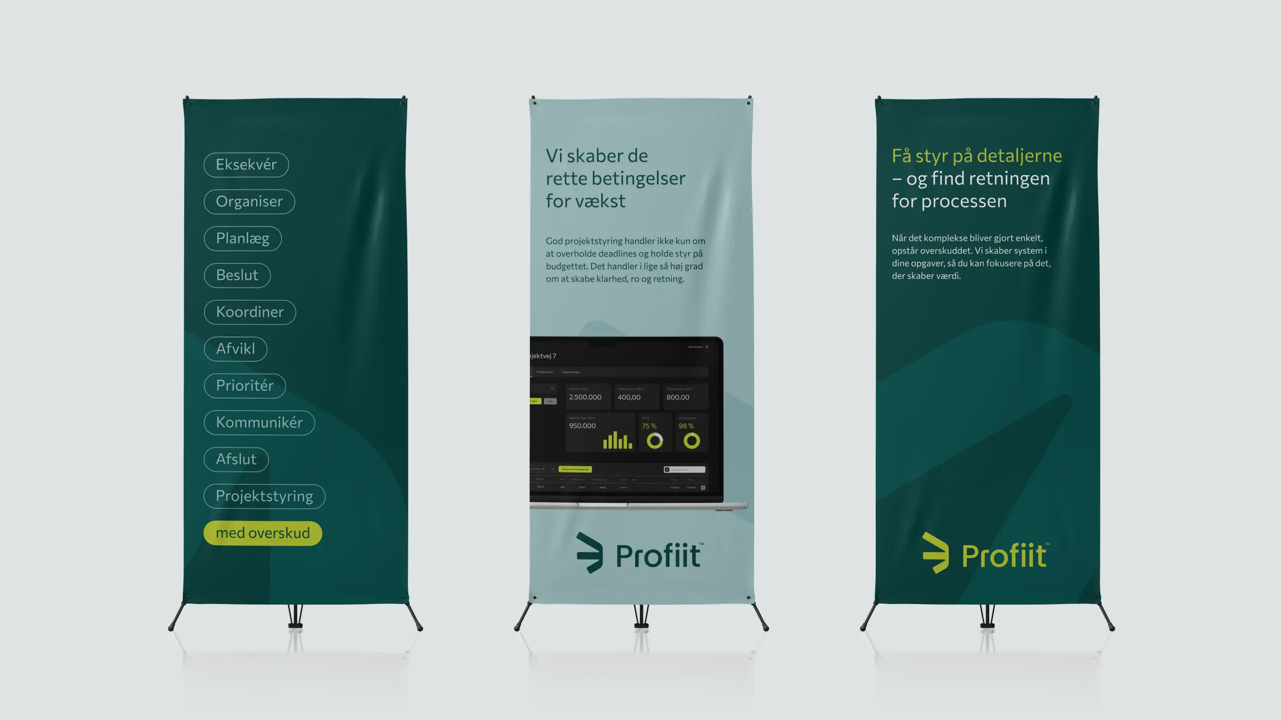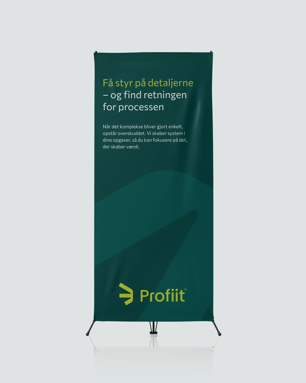 Profiit har i dag et solidt visuelt fundament og en klar rød tråd på tværs af materialer. Identiteten fungerer som en intern rettesnor og giver virksomheden et professionelt udgangspunkt for videre udvikling og lancering.
