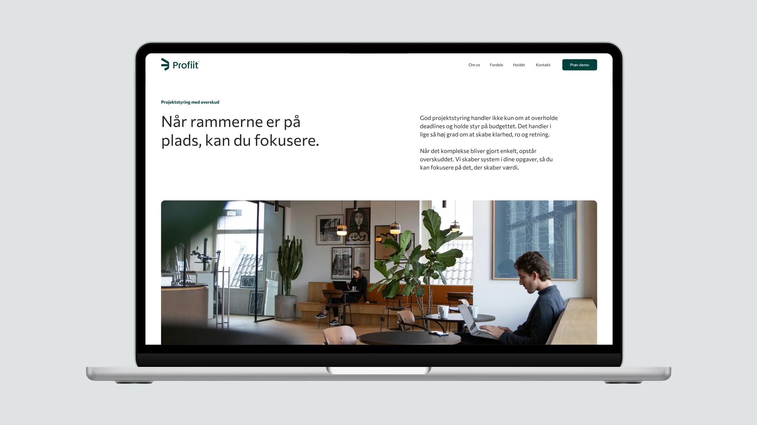 Profiit er et projektstyringsværktøj, der hjælper virksomheder med at skabe overblik og øge deres profit. I forbindelse med lanceringen var der behov for både navn og en gennemarbejdet visuel identitet, der kunne samle produktet på tværs af platforme.
