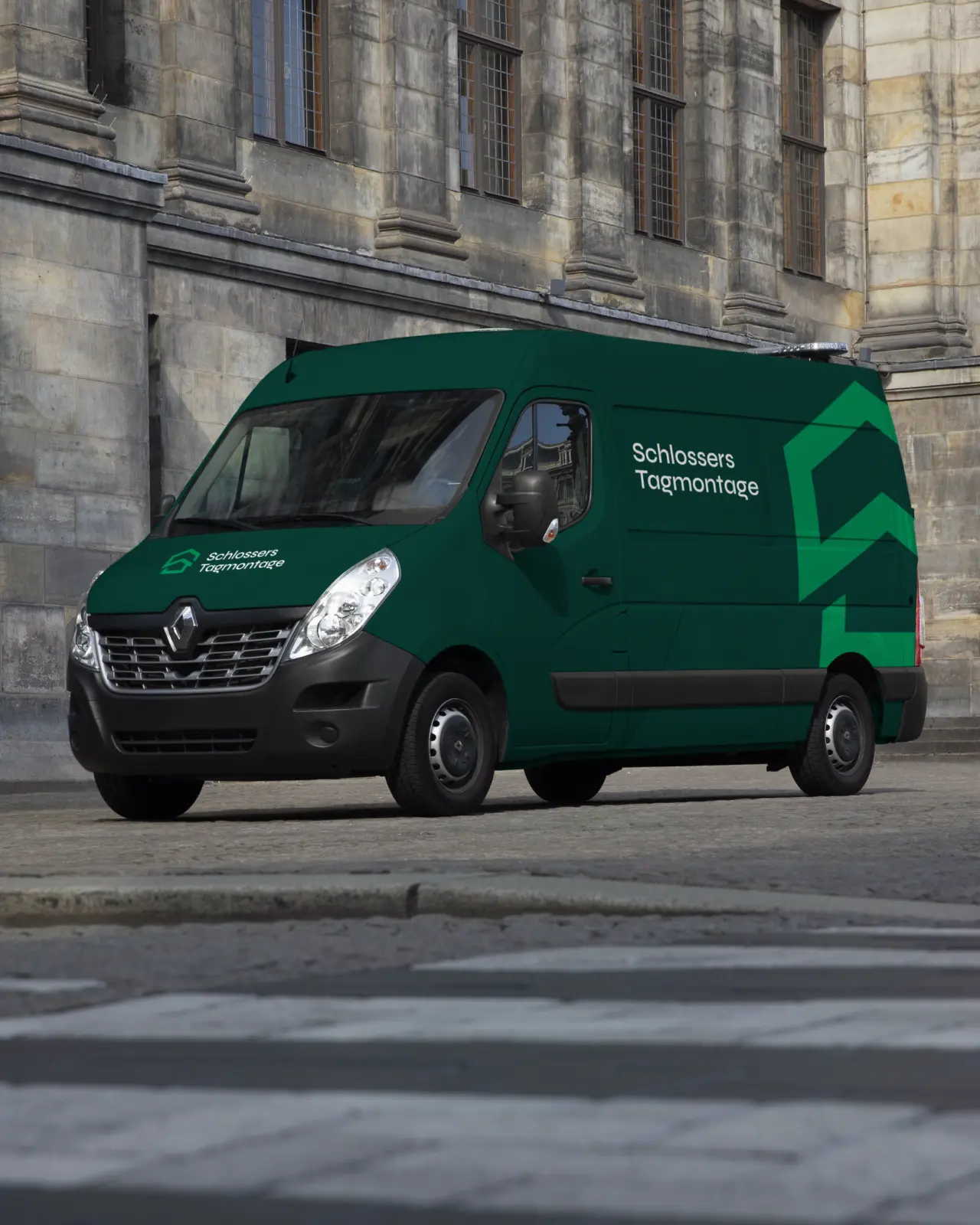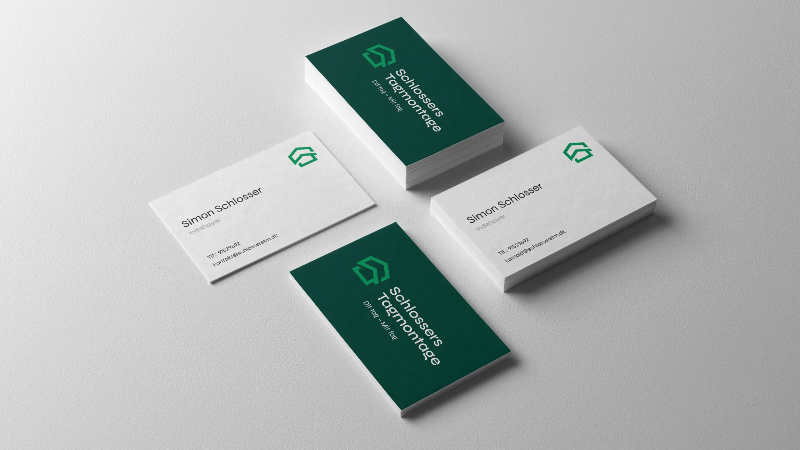 Schlossers Tagmontage har i dag en klar og genkendelig visuel profil, der er implementeret på centrale kontaktpunkter. Identiteten har styrket virksomhedens synlighed og skabt et professionelt udtryk fra start.