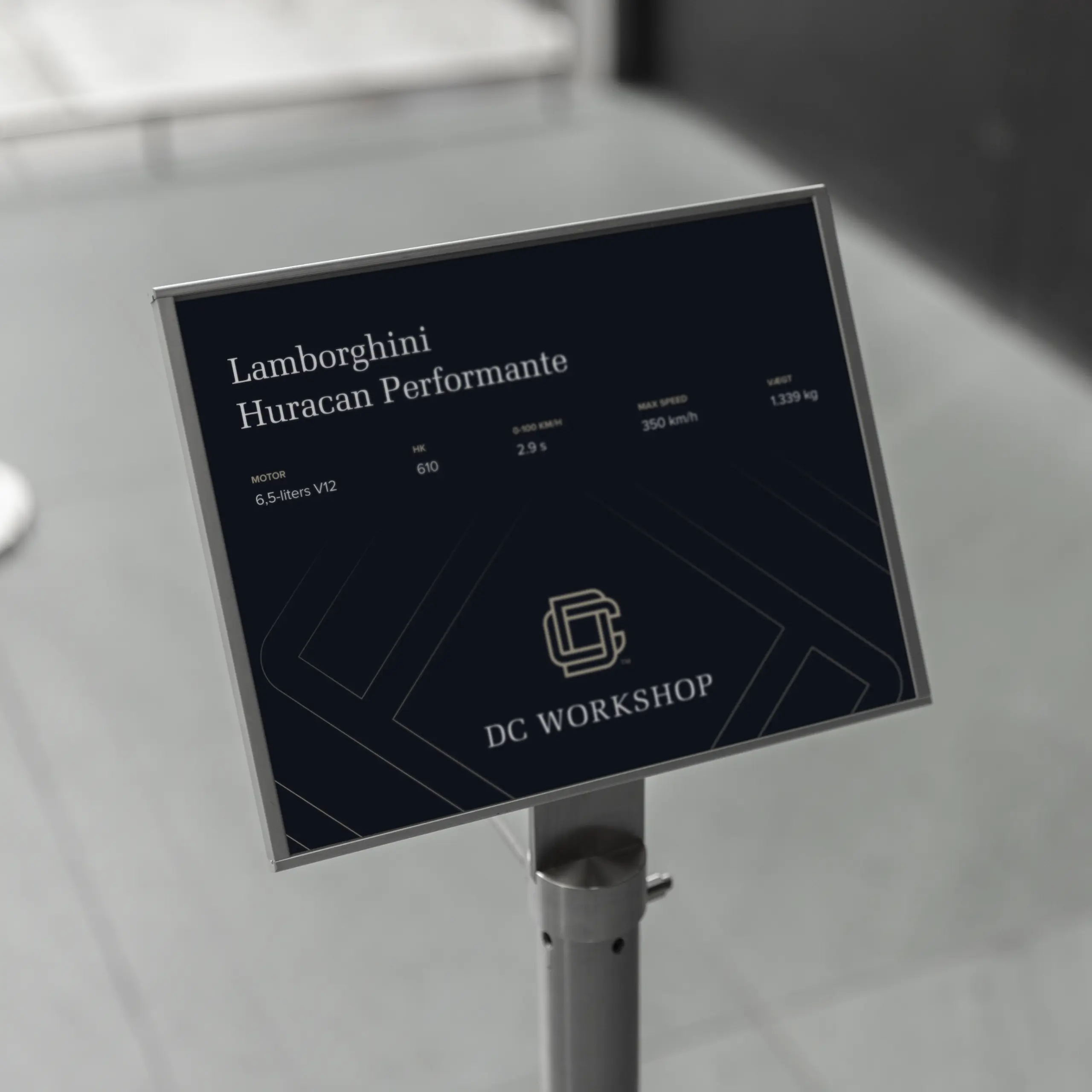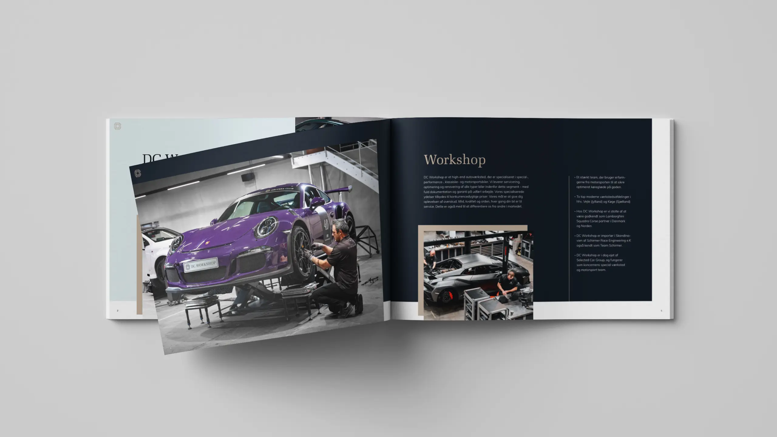 DC Workshop er et high-end værksted med speciale i performance biler. I forbindelse med opstarten havde de brug for en gennemført visuel identitet, der kunne matche både bilerne og det eksklusive kundesegment.