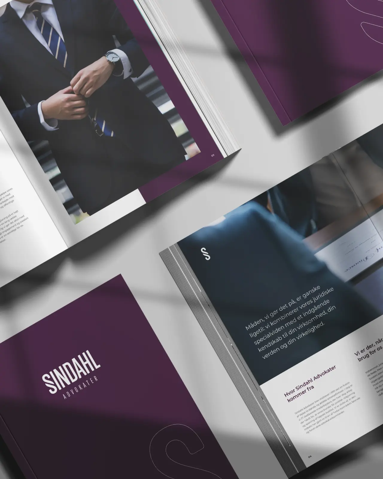 Sindahl Advokater er et moderne advokatkontor med fokus på faglig tyngde og tillid. Opgaven bestod i at udvikle en visuel identitet, der kunne understøtte kontorets professionelle profil på tværs af både trykte og digitale flader.